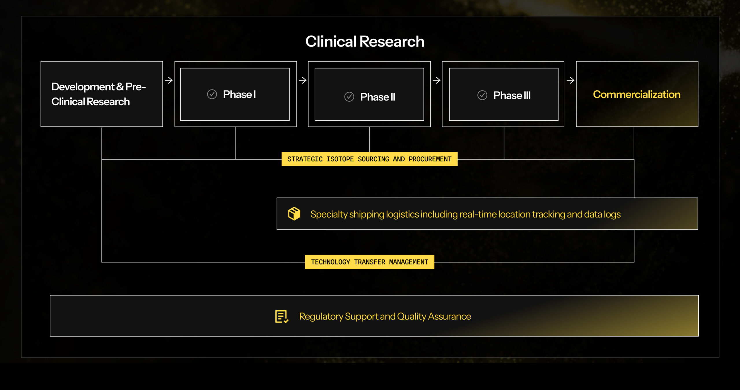Every detail of our state-of-the-art, commercial-scale facilities is built with one purpose in mind: Advancing the development, manufacturing, and delivery of our clients’ radiotherapies quickly, efficiently, and safely.