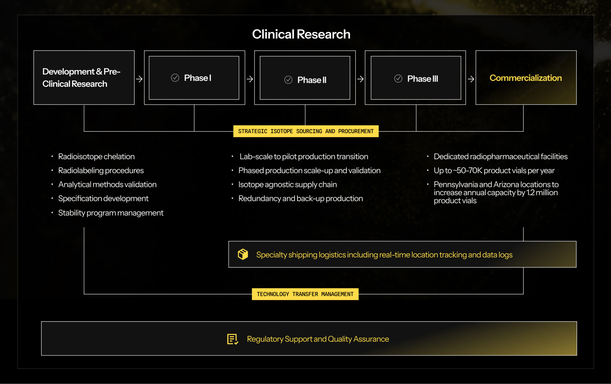With our upcoming expansion sites, we’re scaling to over 100,000 square feet—purpose-built for radiopharmaceutical development and manufacturing—establishing one of the largest networks of its kind anywhere in the world.